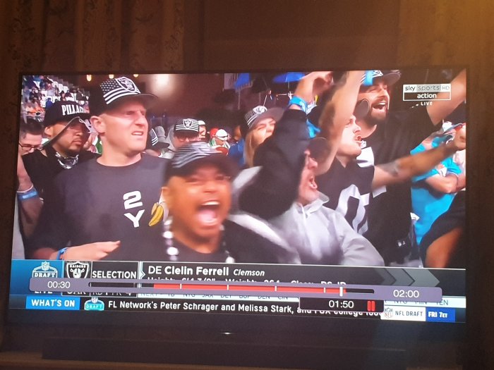 I loved the one Raider fan in the group they showed after the pick who looked bewildered and ticked like he was about to say "What the freak?" right before they cut away.