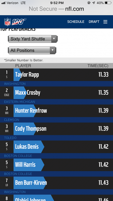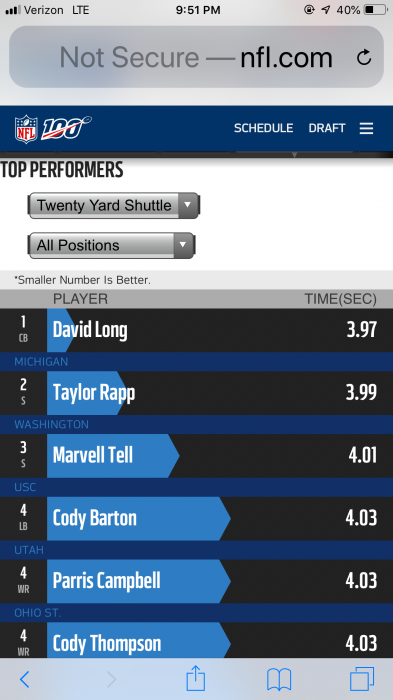 Long tied for the 4th best 3 cone in the combine at all positions dating back to 2006.