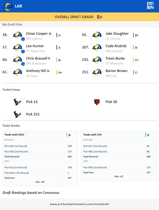 So in the unlikely scenario the Rams love him and he proves out to be a QB1 type talent in TC to take over next year. That would free up not just the 2027 1st rounder for a TDL improvement to the 2026 team. But also frees up cap space because you are not paying your QB1 $40-70M/year. So theoretically, you could add a vet in his prime like McDuffie to this team at TDL and his salary (or extension) without any worries. That improves the 2026 team more than a 1st round 2026 rookie.