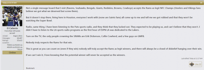 mad at the wrong guys. why so bitter towards the Rams and there fans. we have no control over what is called. there's no ending to this conversation with someone who has made there mind up. maybe he should lay off them chips the salt is affecting his head.