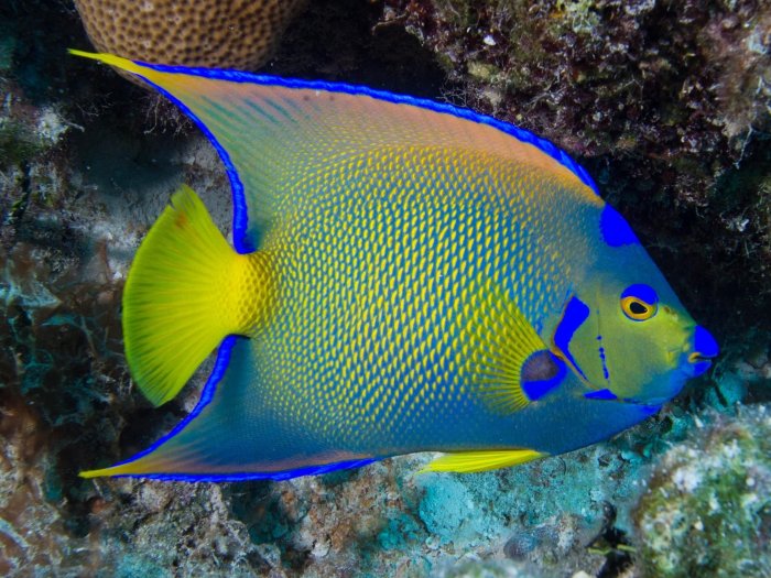 This isn't a pic of mine, but I have a better looking one than this. It's a Queen Angelfish. Mine is about a foot long. Sports Ram colors...