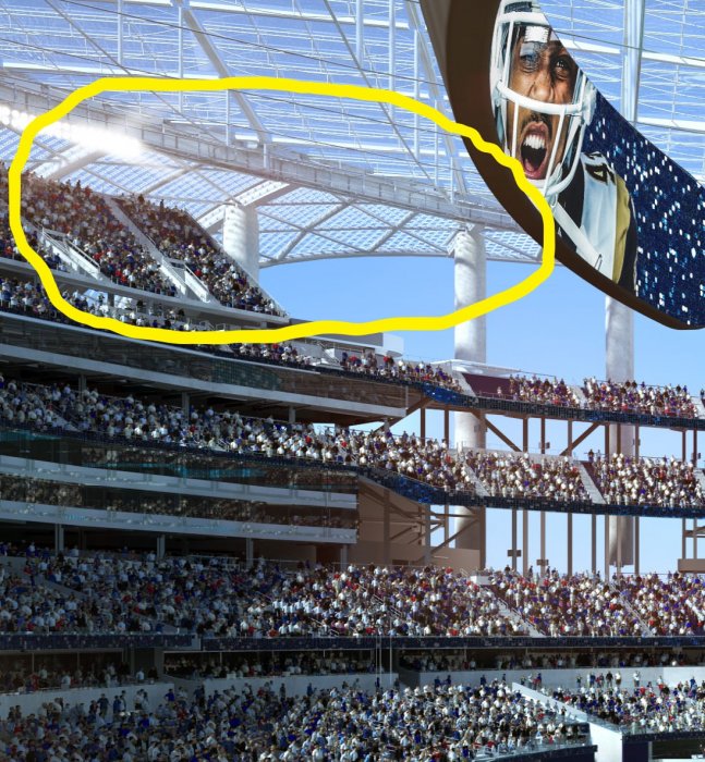 You’re freakin’ me out, man! Surely during this 4 BILLION dollar project somebody asked this question?The thing I don't get is: how in the world are they going to keep the birds out??? Are there no birds or pigeons in LA or something?? this is a completely open-air stadium. Birds are going to poop all over everything. Anti-bird netting will have to cover the entire bottom surface of the structure, and spikes will have to be on top of every main column, on top of the scoreboard, every piece of electrical conduit over 1", etc., etc. (or, maybe they just stretch a huge net vertically to infill the huge openings on either end??)