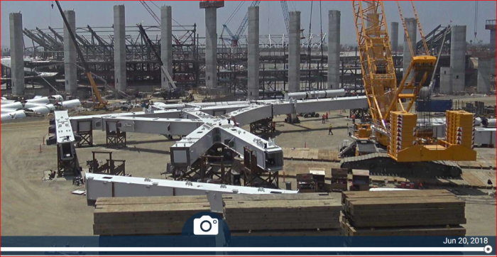 Location where they're being assembled. Not their final place.Location on the stadium? Looks like it is going on those columns, just like in the rendering. Maybe I am misunderstanding.