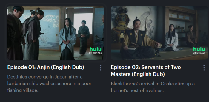 I can't find a dubbed or subtitled last episode of Shogun![]()
