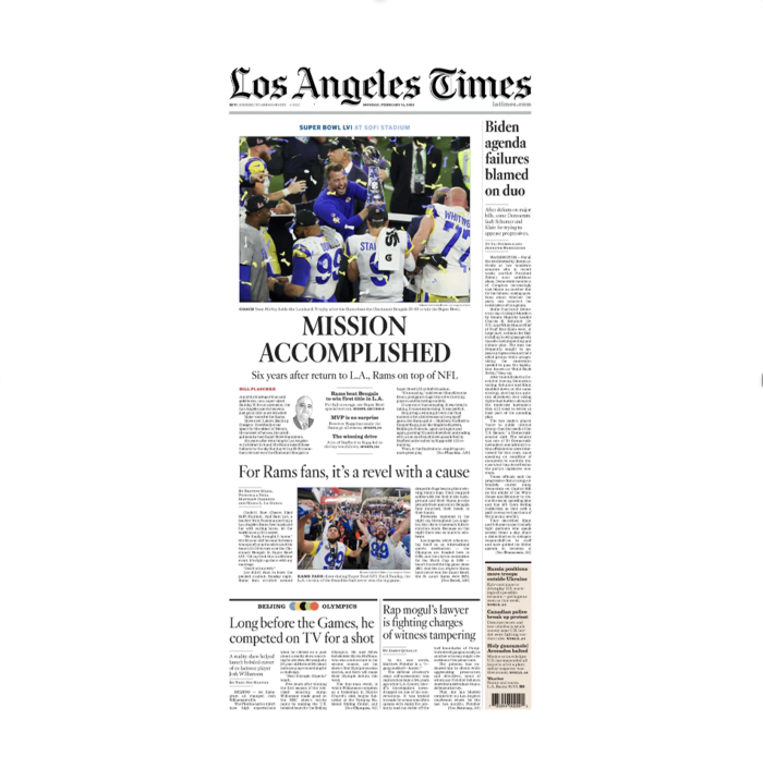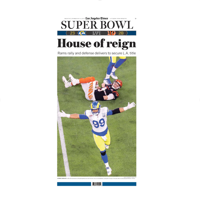 I was fortunate for the power of Facebook. We moved to Florida in December and I think it was Tuesday after the SB I thought about the LA Times and OC Register. I threw it out there on FB that I needed some help getting copies. Low and behold a couple friends came through and shipped me full LA Times for Monday, and the day following the parade. Funny thing is one of the guys is a Seahags fan! Who woulda thunk it! Also ordered the Sports Illustrated copy and 2 copies of this guy on Barnes and Nobles website....Also got copies of the Super Bowl special issue of SI