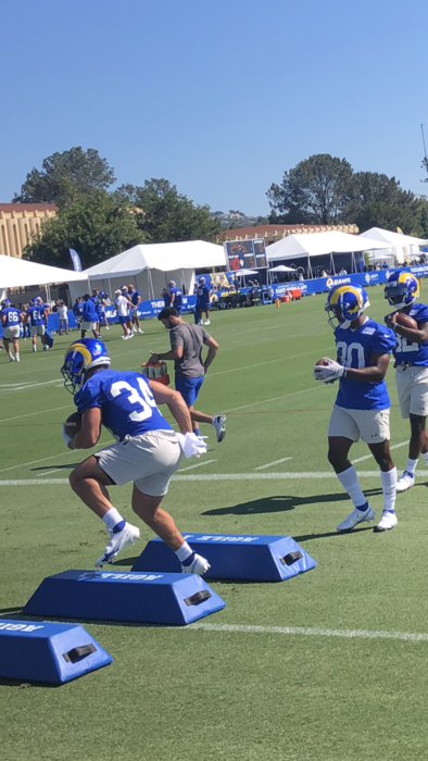 Robert Woods looked very good. He had one one-on-one matchup at the end of one of the drill sessions where he was up against Ramsey. First of all, let me say that it is very weird to see #2 vs. #5 and remember that that is a Robert Woods-Jalen Ramsey matchup. They had that offseason kerfuffle over who gets #2 and Woods pulled rank, I guess. It looked like Robert had Jalen on a short hitch fake, and the ball from Stafford was right on point, but Jalen came out of nowhere and high-pointed the ball and knocked the ball away. Jalen still has it. It happened on the last drill of that series, but I saw Jalen jawing at Robert Woods, following him towards the offensive side, but I'm sure it was just competitive banter. What is the saying? Iron sharpens iron. Well, Jalen looked sharp as fuck.