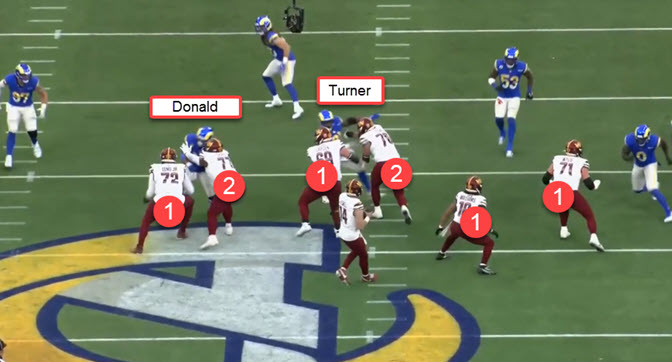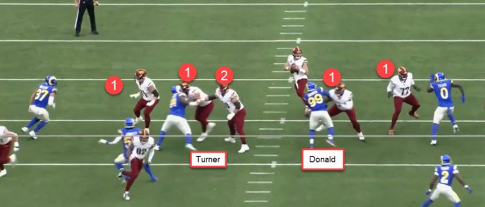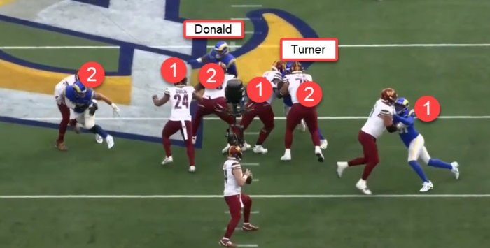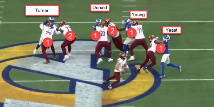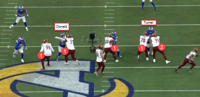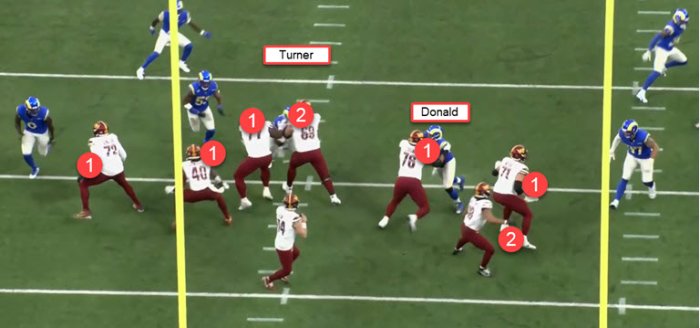 you can see him play his gap and keeps one arm free---often a tell-tale sign of gap-½