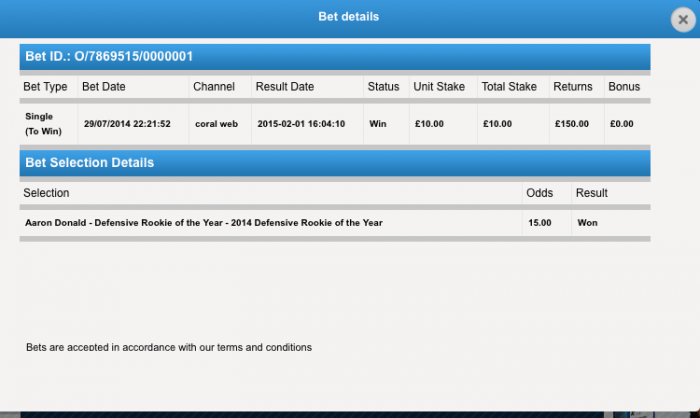 Now time to chuck the winnings on the Superbowl.