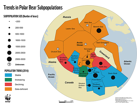 Ah, the majestic Polar Bear. Good news, Angry! The population, though it spiked in the mid-nineties around 25,000 worldwide, WAS around 5,000 back in the '50's. Though some areas have reduced, others have increased, and the population has settled out around 22,000. Amazing creatures. The Arctic ice content is constantly changing, (always does) and has nothing to do with human use of fossil fuels. (Though weaning off fossil fuels won't be a bad idea, as technology-not Government mandate- allows.)