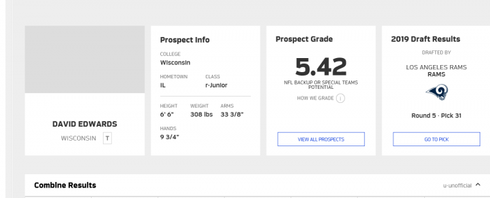 Notice Below NFL.com has Edwards projected grade as an NFL Backup or Special Teams Potential.