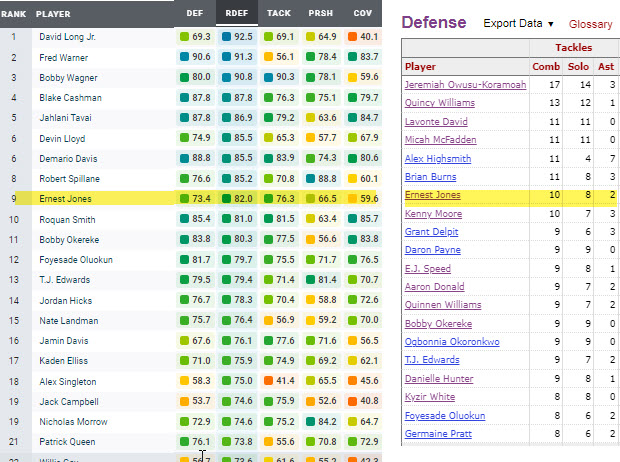 It would be awesome if he turned down the pro bowl because he's getting ready for the super bowl.Ernest Jones is good versus the run. He makes a lot of plays in the backfield.