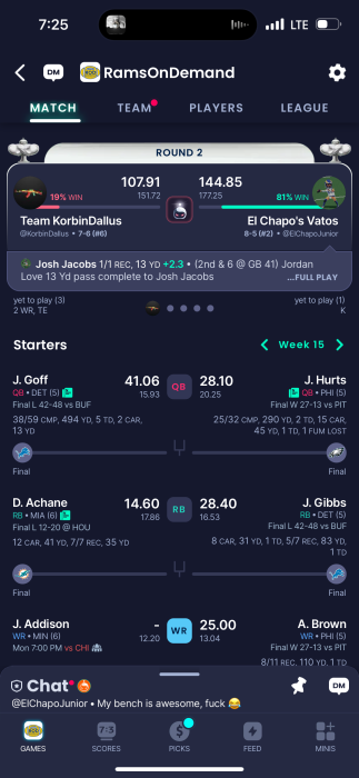 Y'all must be talking about the other league cuz I'm definitely not seeing what you are talking about lolYou're actually up by about 30 thanks to my benching Evans like a dufus.![]()