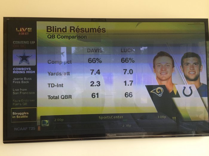 Tony Reali on Around the Horn just now: "Brett Favre thinks Austin Davis could be the next Kurt Warner. Rams security thinks Austin Davis could be an intruder. Who's closer to being right!?"