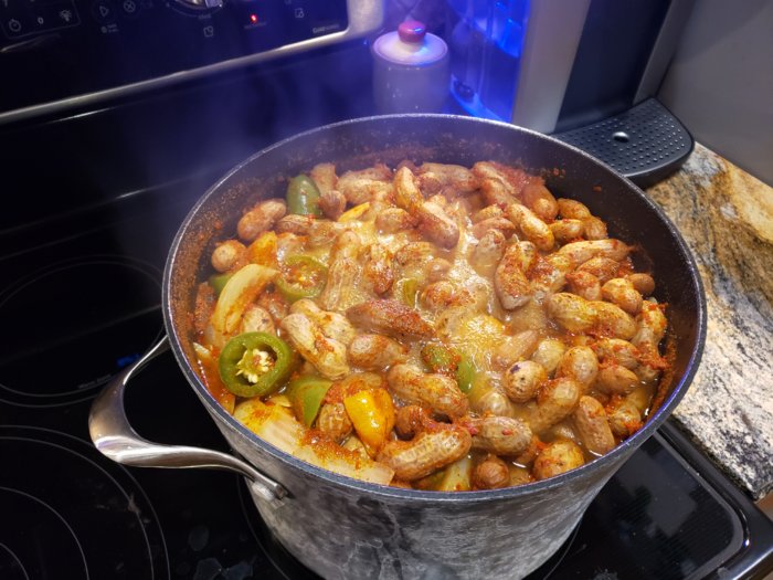 Here's the beginning stage of the super hot garlic boiled peanuts I made yesterday.
