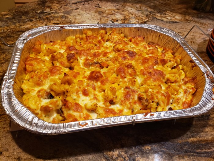 This is the lobster mac n cheese I made yesterday. It's loaded with lobster tails that I grilled before adding the meat into the mac. It tastes so good it should probably be illegal.