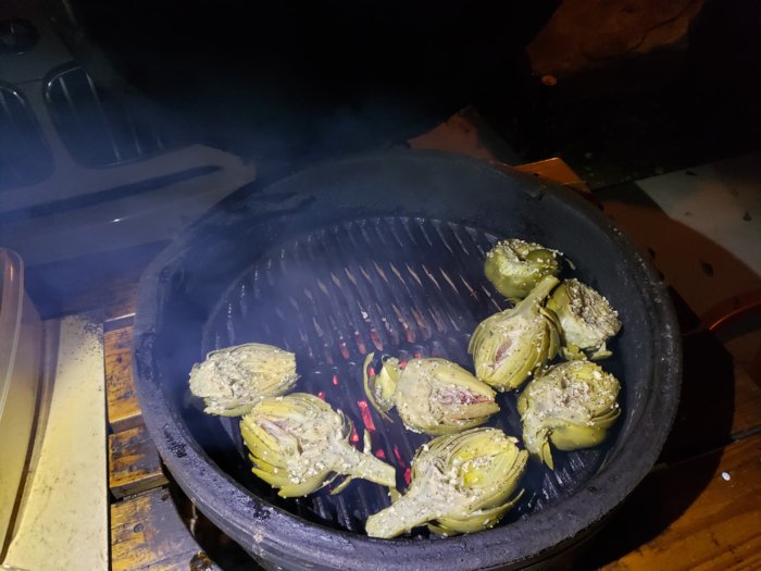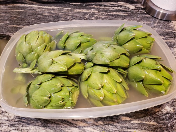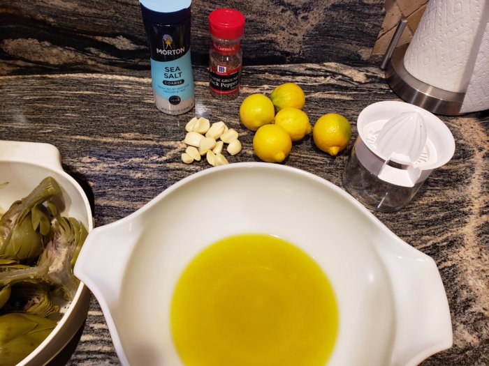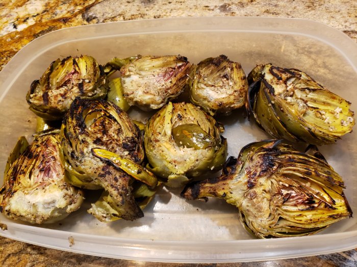 I made grilled artichokes yesterday. It's a real process and takes hours to do it from start to finish. I got this recipe from the head chef at a restaurant here called Houston's. Someone bought the restaurant and changed it's name... they kept the exact same menu though... but they fired all the longtime employees including that chef. That's how I was able to get the recipe.