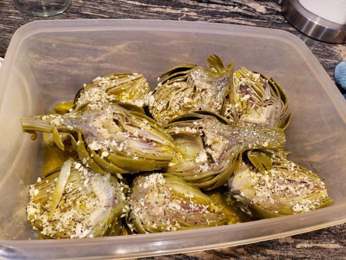 My first artichoke was made for me by the twin sisters I used to date. They both worked in an Italian restaurant where they were originally from in Connecticut and that's where they learned how to make em. I've been hooked on those damn things ever since.