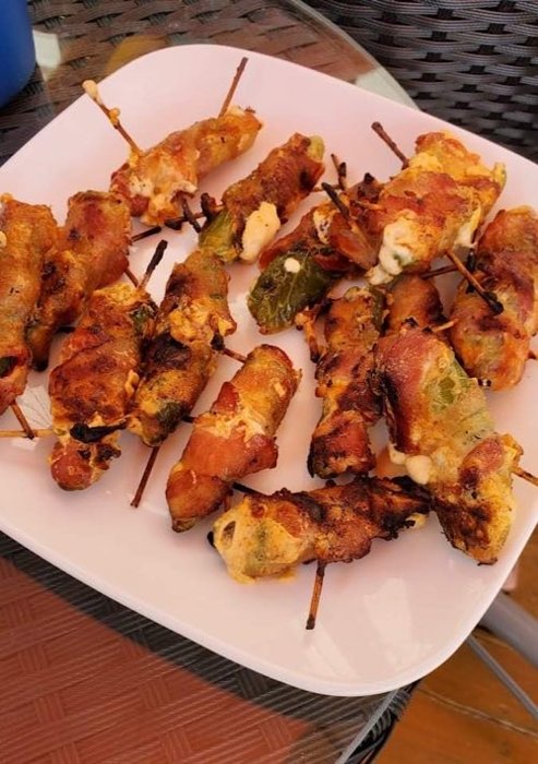 Bacon wrapped jalepeno poppers… grilled these Sunday.