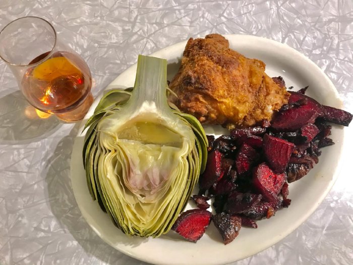 Add in a perfectly cooked globe artichoke.