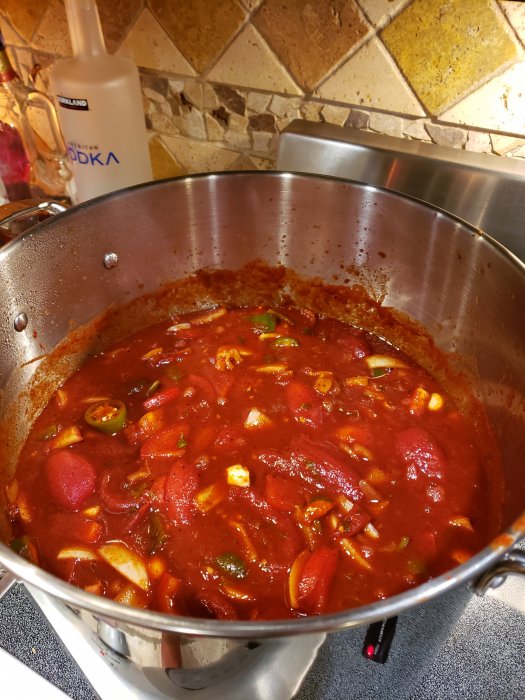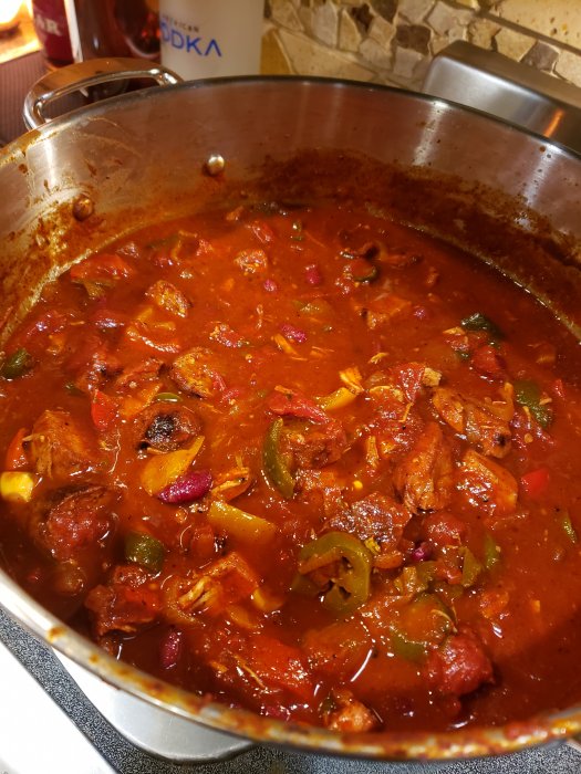 Here's a shot of the soup cooking up in the pot after all the ingredients were added. Lots of good flavs going on in here.