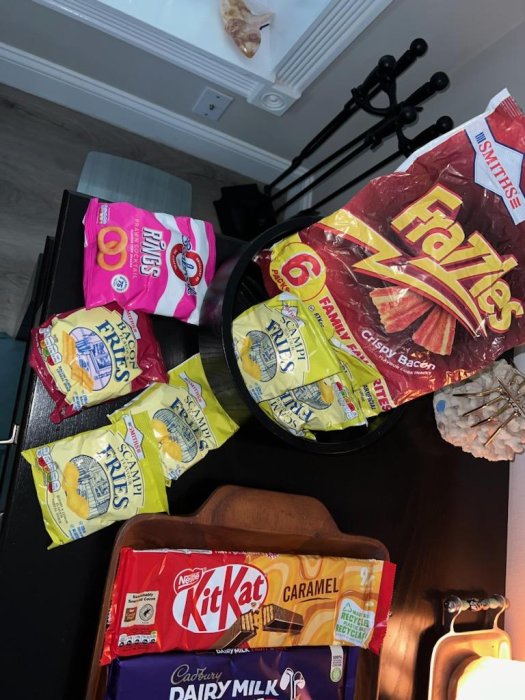 There is nothing there that I wouldn’t eat. Those bacon fries are world class. Scampi fries are a bit of an acquired taste and it’s sometimes joked that they resemble something a bit rude when sniffing your fingers after eating. They’ve given you a decent haul there for sure. Percy Pigs are from M&S, good grub from there. I have a M&S food shop right by where I live, I’m always in there. Enjoy my friend.