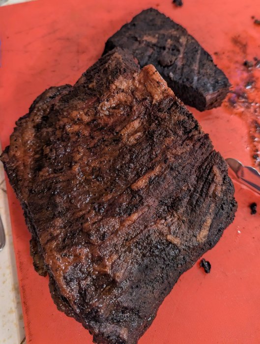 That is a long smoke.So I did a prime brisket starting on Sunday and finishing on Monday. I put it on the smoker at 4pm on Sunday at 225° along with a pan with the trimmed fat, injected some of the rendered fat and wrapped it Monday morning when it reached 165°, then took it off at 3pm Monday when it had reached a hair over 190° and put in a cooler with a bunch of rags for 2 hours. Very long smoke but MAN is it good. Even the flat was nice and juicy.