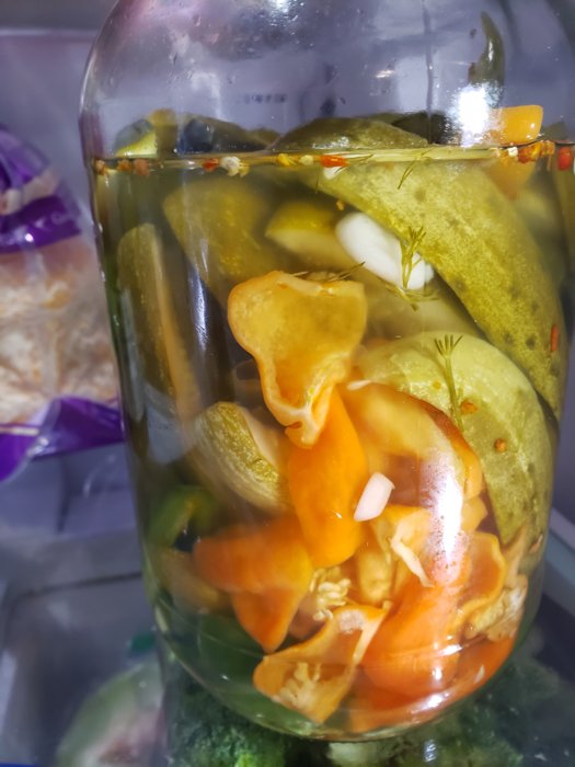 Put together some hot pickles that you can't eat just 1 of. I used some of that "I can't feel my face" chilli flakes in it.