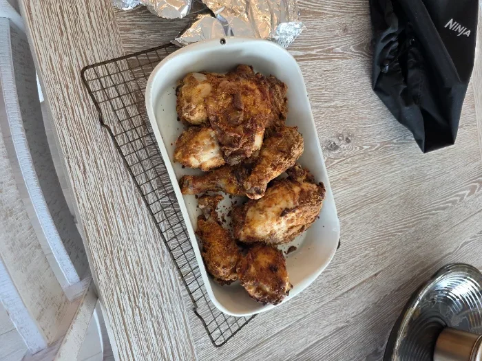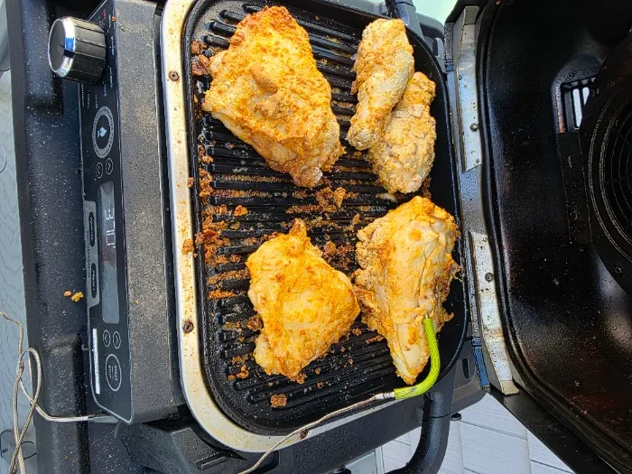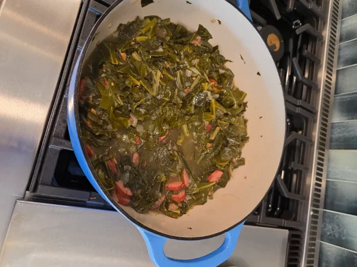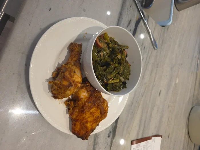 I made some bomb ass fried chicken and greens a few weeks back. Soaked the chicken in buttermilk and hot sauce for 12 hrs, then battered and air fried it....i may have posted pics in the GDMT for that week, but here they are again.