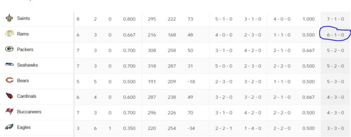 Ok. If it's conference win/loss you're right, Rams would be #2