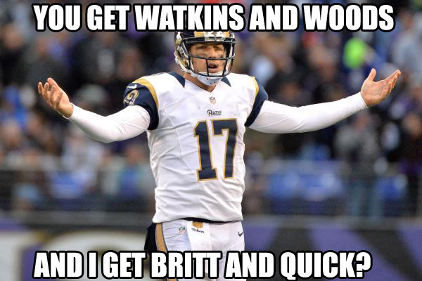 Goff’s situation has been completely refurbished for his second season. The team shipped out Greg Robinson – one of the worst left tackles in football – and signed Andrew Whitworth in free agency, who has just had his fourth game of perfect pass protection already this year. Whitworth has been one of the best pass-blocking tackles in the game for years, and alone represents a huge upgrade in Goff’s situation in the pocket.