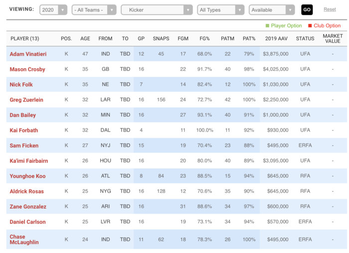 2. Return to consistency with his kicks. 2016 86.4%, 2017 95%, 2018 87% and in 2019 72.7% with 2 kickoffs OOB. That's a big dropoff. More importantly, when you break down his misses disturbingly he was only 5 of 11 (45.5%) in distances of 40-49 yds. That was a huge dropoff over his career numbers. His OOB kicks coupled with his inaccuracy in the 40's is reason for concern. Any other kicker would not be re-signed.