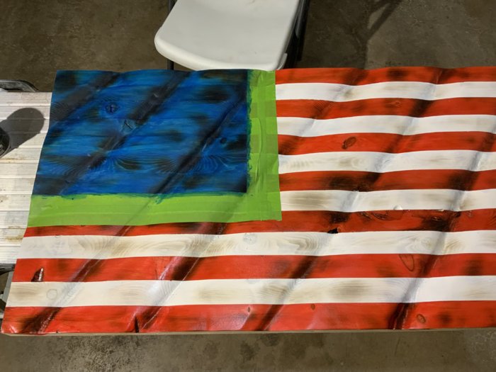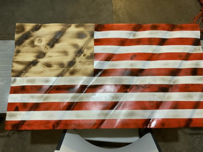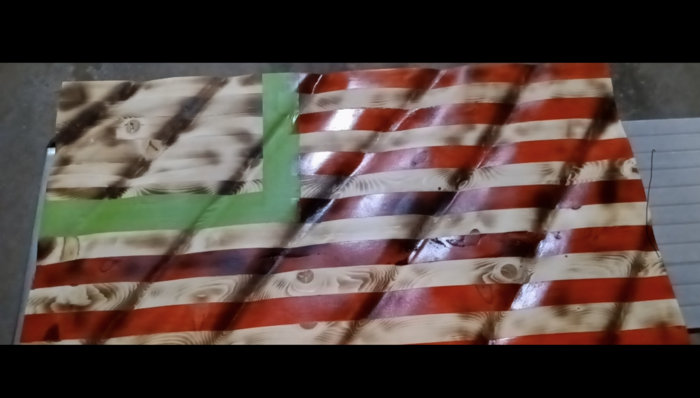 Looks pretty cool. Can't wait to see the finished product.Trying a new venture with a wavy wood flag. Here is a glimpse of it partially completed.