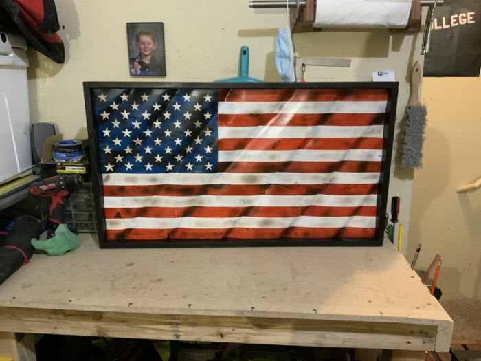 Nice. How long does it take you to make one of those? Are you selling them on Etsy? https://www.etsy.com/Made another flag this weekend. They go for 400-500 on line. So I’m upping my price to 350.00. Have this one sold already. May be my mini business over the winter.