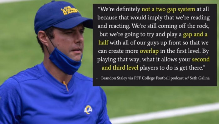 Rams don't use a 2-gap NT or 2-gap 4i techs. It's gap-and-a-half. Control your assigned gap