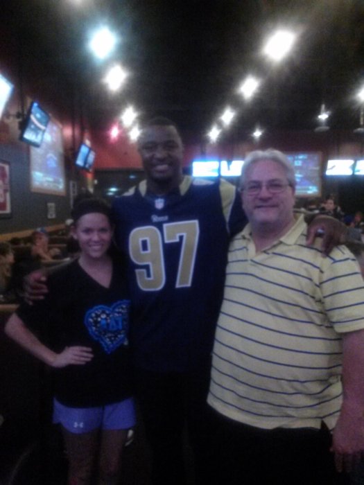 He seemed like a nice guy. He was there with Eugene Sims, Kenny Britt (who is really tall and we'll built) and Cudjo. They were there after the Robinson pick but before the Donald pick. I told Stedman he was the reason the Rams didn't need to draft Watkins. He chuckled. I told him I thought he was going to have a great season and he thanked me. I told Sims the Rams DL was the best in the NFL even without Clowney. He chuckled. I was a little bit geeked up to meet these players.