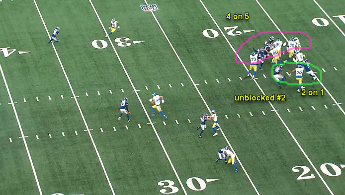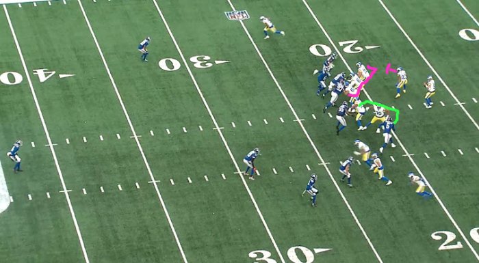 If K. Williams reads to right (prob thought Hav would have the #2) Stafford gets off big gainer. However, WR Robinson does not seem to be looking.