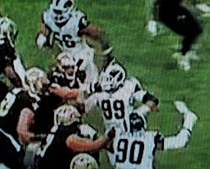 On the play in question, looks like a fist full of mask too! Looks like they have a good hold on Brockers too: