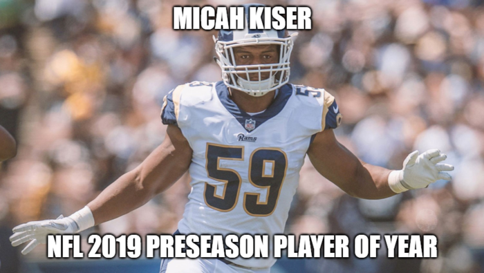 I’m all for that, but from what I’ve seen of Micah Fisher is exactly as I stated. I’ve watched him in training camp and in the preseason. His rookie year he led the Rams in preseason tackles. In 2019 you should OK range but had trouble getting enough depth in pass coverage.