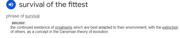 You can't seriously say that animals going extinct - animals that would still be fine and dandy, had humans not poached the shit out of them - solely because of human selfishness were "survival of the fittest". I can't agree with that.