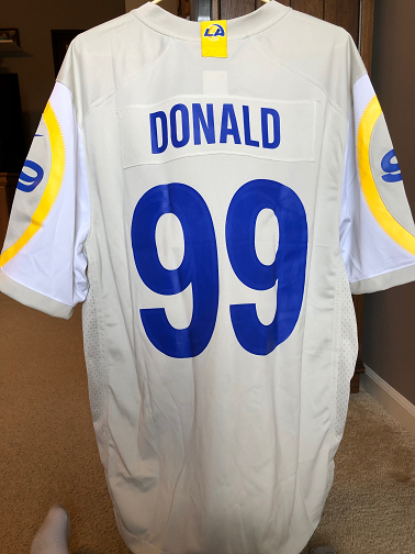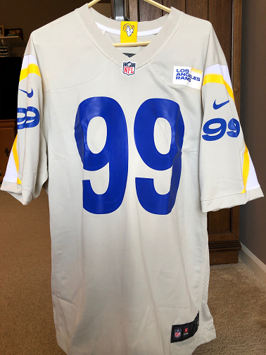 You all know my favorite uniforms are the old school 70's-90's versions but I do like the new bone jersey. In person, you can actually see the blue, yellow and white combo of the old Ram away jersey. It's by no way better than those jerseys (we all know God created those