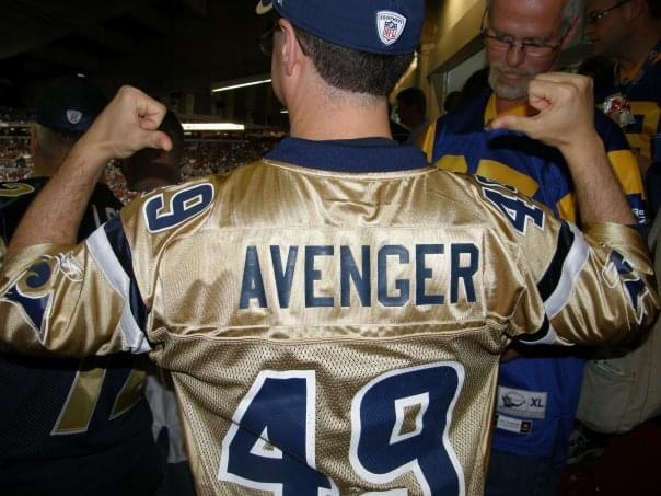 That's very shiny but they did have THAT color jersey (matched the pants) with blue numerals when they made the change in St. Louis.Pretty sure this is the only one of these...