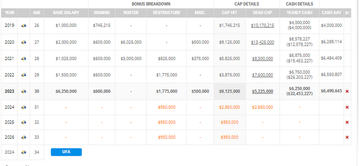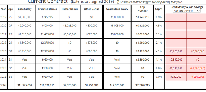 According to overthecap.com, Higbee has a $9,125,000 million cap number right now. If he's cut after June 1st, his dead cap space is $2,375,000 and the cap savings would be $6,750,000.