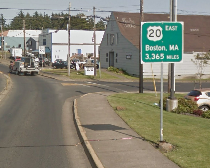 Is that where it ends? We had a similar one for Hwy 50 in Sacramento. Was a sign for Ocean City, NJI do not think I have ever been on this part of Hwy 20 (probably 'cuz I have always navigated to the OR coast from up north, near the Portland area). This sign is on the Oregon coast, near Newport.... Probably some sort of inside joke, since apparently there is similar sign in Boston indicating the destination is Newport.