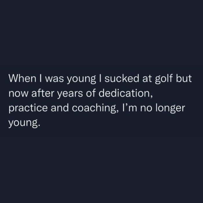 When I was young I really sucked at golf. Now, after years of practice, dedication and coaching, I'm no longer young.