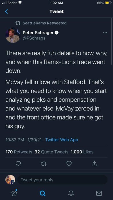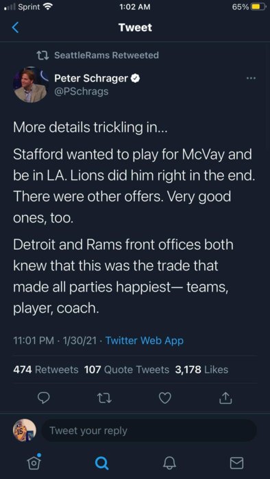 This one was harder to understand at first because many of us have grown attached to Goff. I know I had him and Stafford as similar-level QBs. Hopefully McVay is correct here. I understand his frustrations with Goff; we all watched the struggles against SF and Miami this year for example. And maybe getting out a Detroit will lead to Stafford putting up career best numbers.