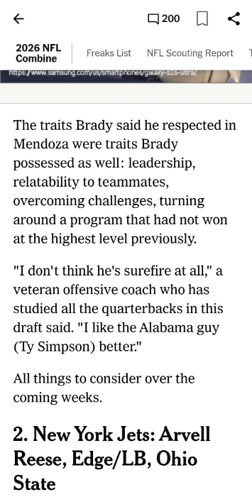 Its from the Athletic, can you post the actual article?Scroll down in this article. It doesn't seem like Mendoza is a sure thing at all, and one top offensive mind likes Simpson better.