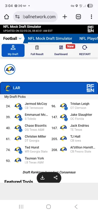 Just tryna new mock. Heard good things about Hood, so felt good to go WR when Lemon fell to 13. Neal adds to the CB room, Tiernan for a developmental swing OT, Elarms-Orr to boost the LB room, and Randall... a 6'3 beast with 4.4 speed. Curry adds a bull-rush EDGE to back up V8, Allar for development, and Cole to add to the safety room if Curl walks.