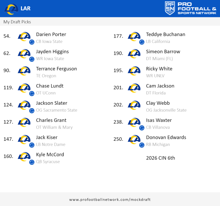 I really think Elic is going to be something tbh. IDK if that would be a wasted pick as it seems McVay is scheming one mostly, but another route in his plays as primaries and a 3rd WR is a wasted distraction? Wonder if he is capable of adding a Elic and a legit TE and having all of them produce and not being predictable? Was Kupp that bad? IDK... was never a fan of the Tutu pick but even I have to admit he underutilized him as Stafford gets fixated on one target, is it Stafford or the play drawn up? idk... I debate myself this often this off season.