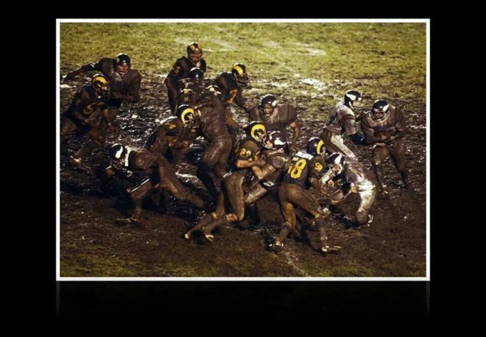 In 1969 the Rams wore blue and white unis all year long--not the blue and gold. Love the picture, though!! I was watching the game with my pop and we both were frustrated and that frustration remained with my pop until he passed on back in 2009.