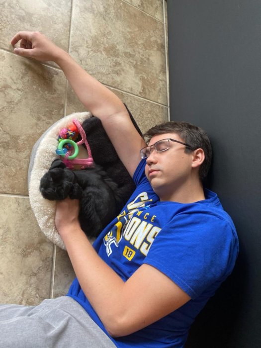 Yeah... He looks like a real tough guy in that pic.My oldest son @Ramrasta and his wife brought home their 1st puppy yesterday. He told his wife over a year ago that she would have to win one of the big college golf tournaments before she could have a puppy. Well... that was all she needed to hear... she took care of business on her end.